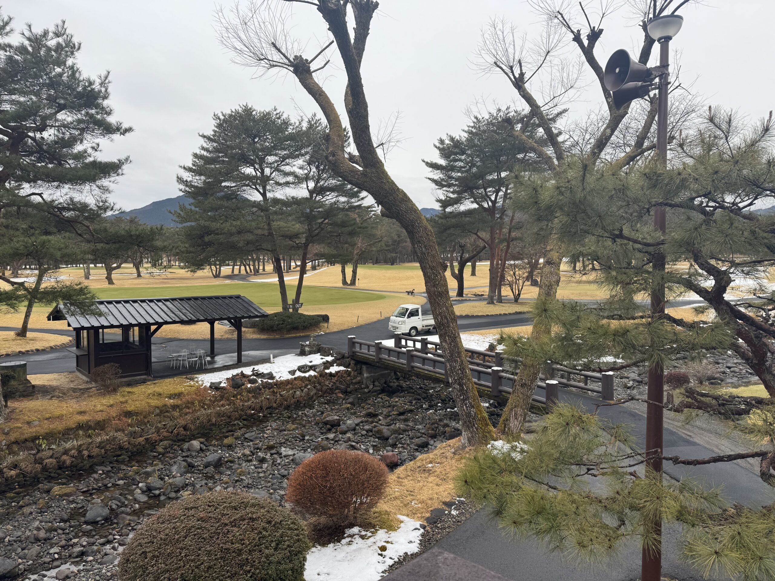 7日(土)夜に降った雪がまだコース内の日陰箇所に残っています